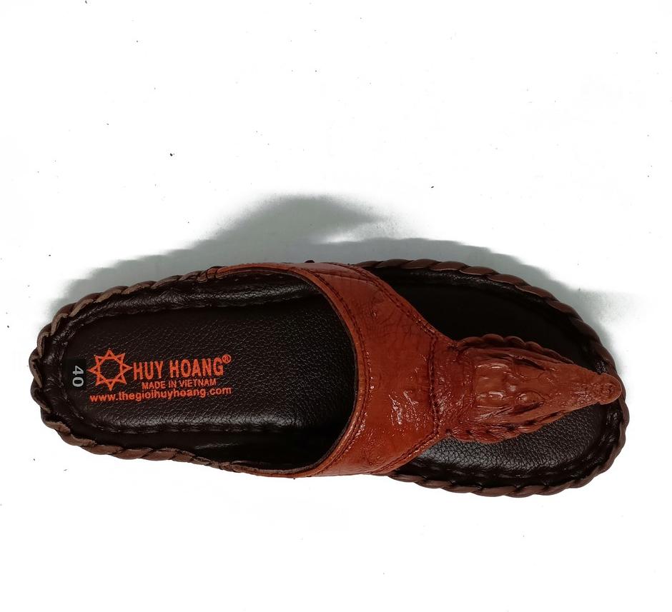 • Tên sản phẩm: Dép nam Huy Hoàng đầu cá sấu màu nâu đỏ HT7239