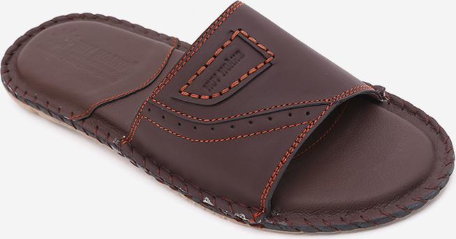 Dép nam Huy hoàng da bò quai ngang màu nâu 7136