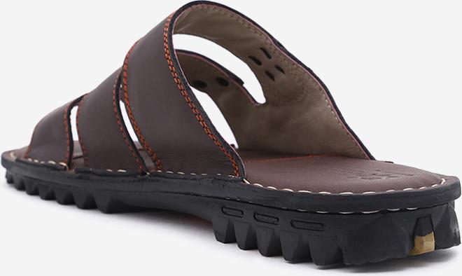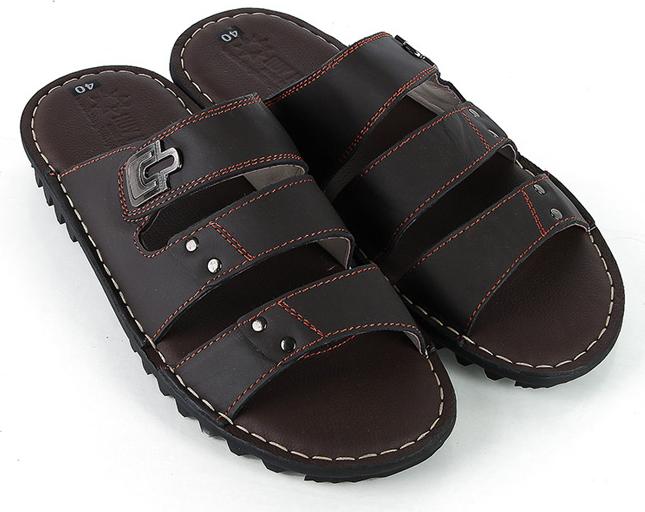 Dép nam Huy hoàng da bò quai ngang màu nâu 7136