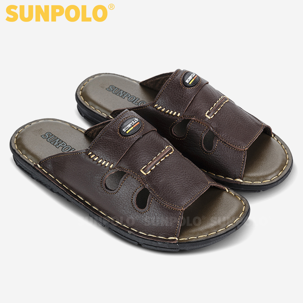 ✨Dép nam quai ngang da bò SUNPOLO AQN005 phiên bản nâu