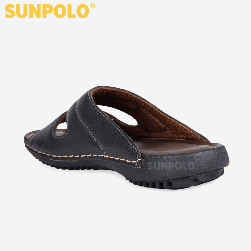 ✨Dép Nam Quai Ngang Da Bò Sunpolo SUD24D - Đen