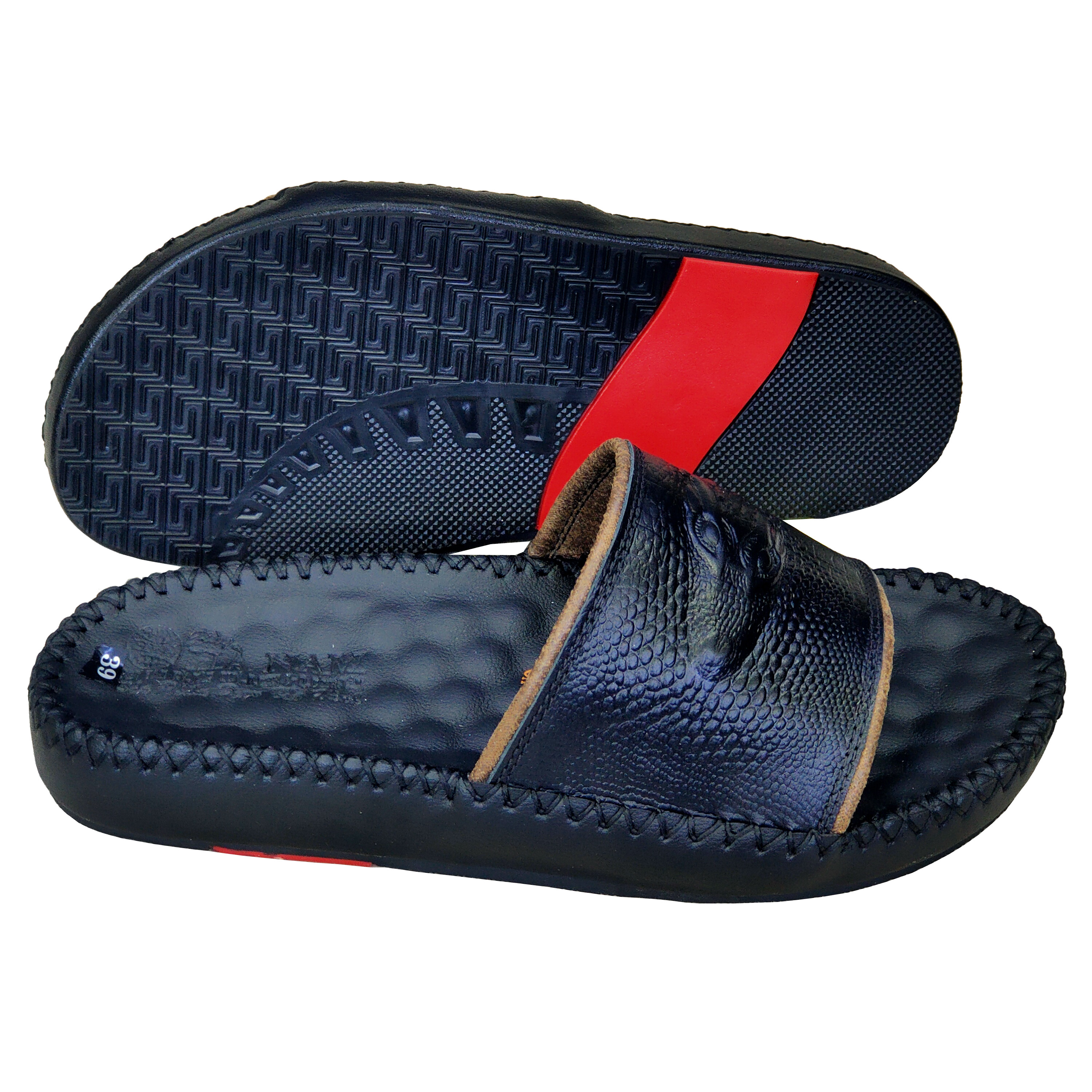 DÉP NAM BA QUAI DA BÒ,QUAI CÓ GẮN KHUY ĐẸP MẮT Dép quai ngang cá sấu da bò 100% Chất liệu: Da bò thật thật 100% da bò tự nhiên Đế cao su tốt đi