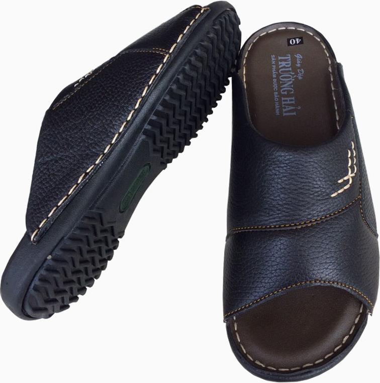 ✨Dép nam quai ngang Trường Hải da bò thật mềm mại may thủ công chắc chắn tỉ mỉ đế cao su không trơn QNN074
