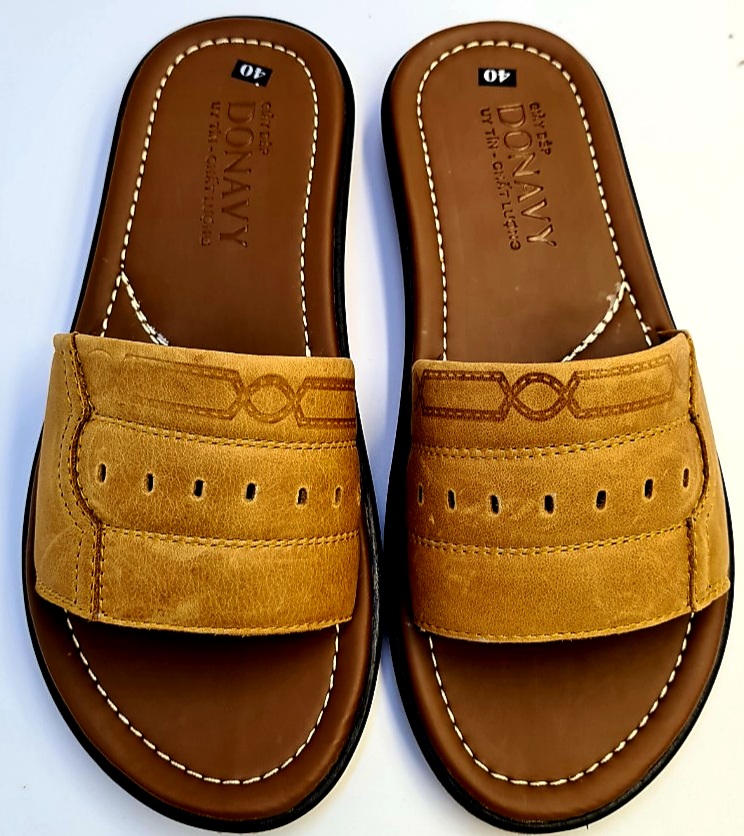 Mua tại TiktokDép quai ngang nam da bò 100%, quai 02 lớp da Bò Donavy cao cấp may full quai và đế rất chắc chắn DONAVY1MC Chất liệu: Da bò thật 100% da bò tự nhiên Đế cao su tốt đi siêu êm, chống chơn, trượt. Da được may vào đế cẩn thận, đẹp bao đi nước Hàng đảm bảo giống hình
