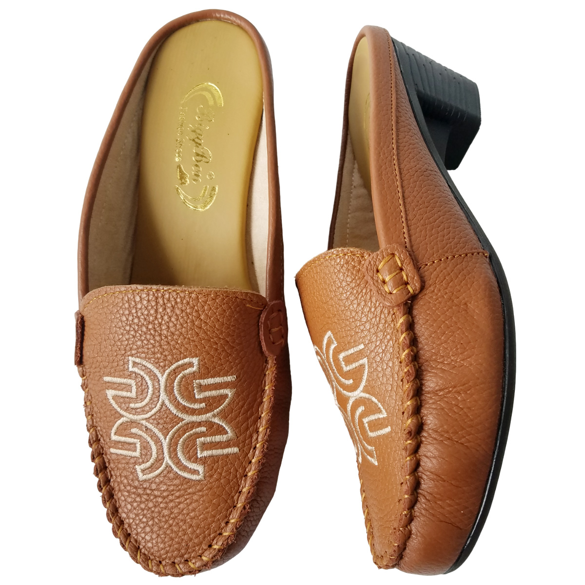 Giày Sục Nữ Giày Cao Gót 3Cm Da Bò Thật Siêu Mềm Cao Cấp Evelynv 3P2916 (Đen)