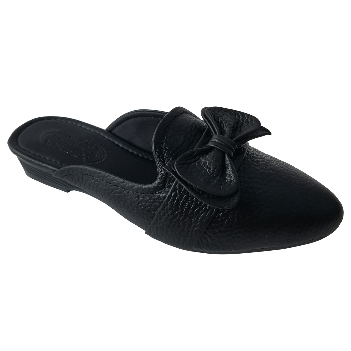 ROSATA - thương hiệu giày thời trang nữ cao cấp THUẦN VIỆT NHƯNG CHẤT LƯỢNG QUỐC TẾ ---- Dép sục nữ màu đen 2p RO381 ROSATA tại BCASHOP hở mũi, quai ngang có đính nơ