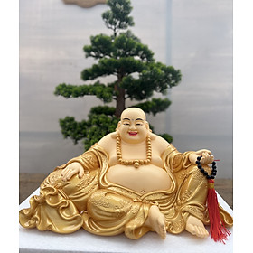 Chất liệu: Đá ngọc Hoàng Long Kích thước: Dài 50 cm x Rộng 20 cm x Cao 34 cm Khối lượng: 40 kg Phật Di Lặc trong Phong thủy Còn gọi là "Phật Cười", Di