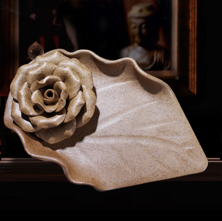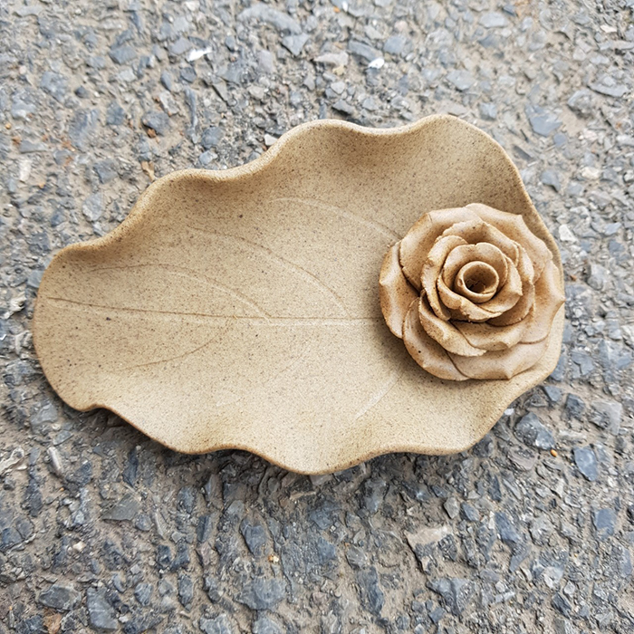 ✨Đĩa đốt trầm gắn hoa DDT14 xuất khẩu (Mầu gốm tự nhiên)
