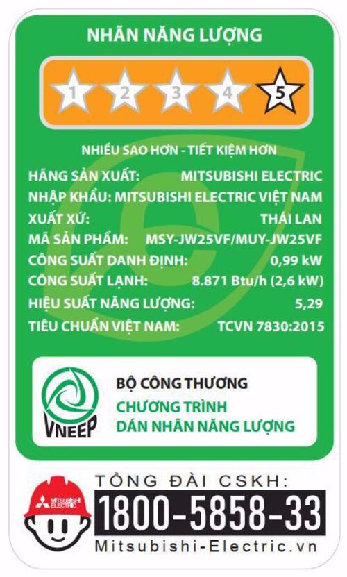 Hiệu suất năng lượng :5,29(TCVN 7830:2015)