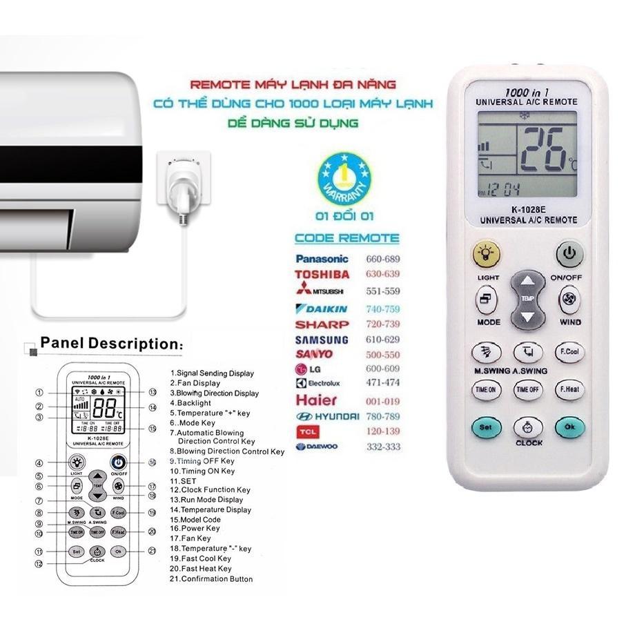 Rất đơn giản, chỉ bạn cần hướng REMOTE MÁY LẠNH ĐA NĂNG vào máy lạnh, nhấn nút ON. Sau đó bấm SET mục đích để REMOTE MÁY LẠNH ĐA NĂNG dò đúng mã code tương ứng. Khi thấy Remote dò đúng mã CODE của máy lạnh (Mã CODE có trong bản hướng dẫn trong hộp) bạn bấm OK! Từ đó là bạn có thể điều khiển máy lạnh dễ dàng.
