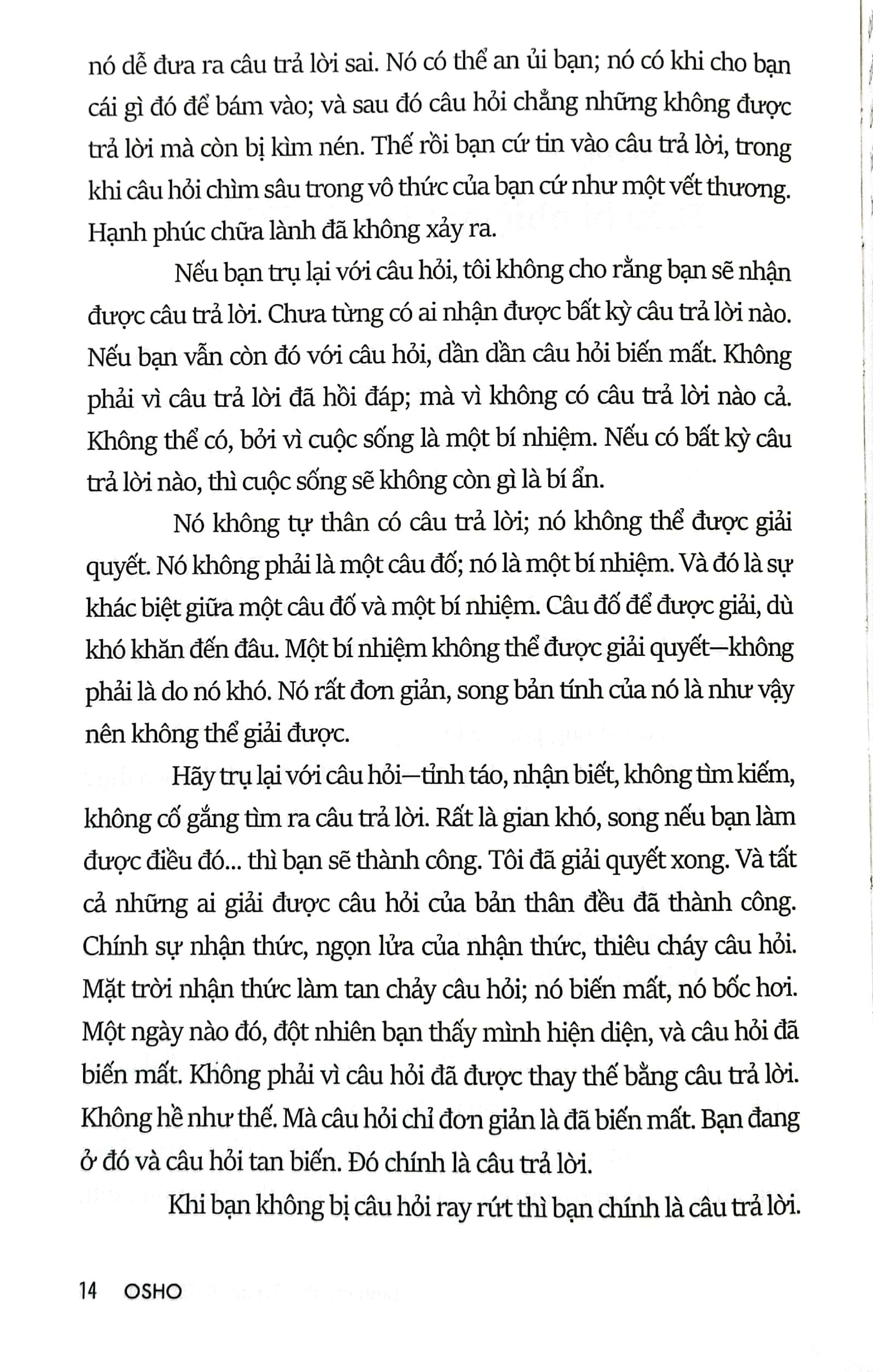 Chừng nào cú nhảy đó chưa xảy ra, bạn còn sống trong vùng đất hoang; sẽ không có gì nở hoa ở đó bao giờ. Bạn thi triển mọi nỗ lực có thể, song sa mạc sẽ vẫn là sa mạc; bạn sẽ không chạm ngõ một bông hoa nào. Hãy lên đường với khao khát trở thành Thượng đế. Lên đường khi con người muốn trở thành sự thật. Bạn muốn cảm nhận nó - rằng "Tôi chính là sự thật."