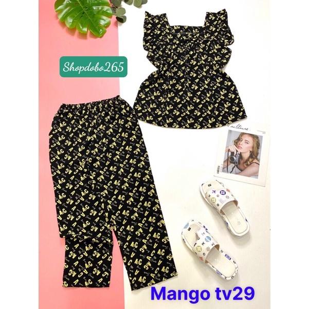 Đồ bộ nữ,đồ ngủ mặc nhà lửng vải lụa mango BL 14 hoạ tiết chữ dễ thương size 47-57,60kg. Chất lụa mango mềm,mịn,mát,không nhăn không xù. Freesize 47-57,60kg cao trên 1m6 tùy chiều cao. Hàng