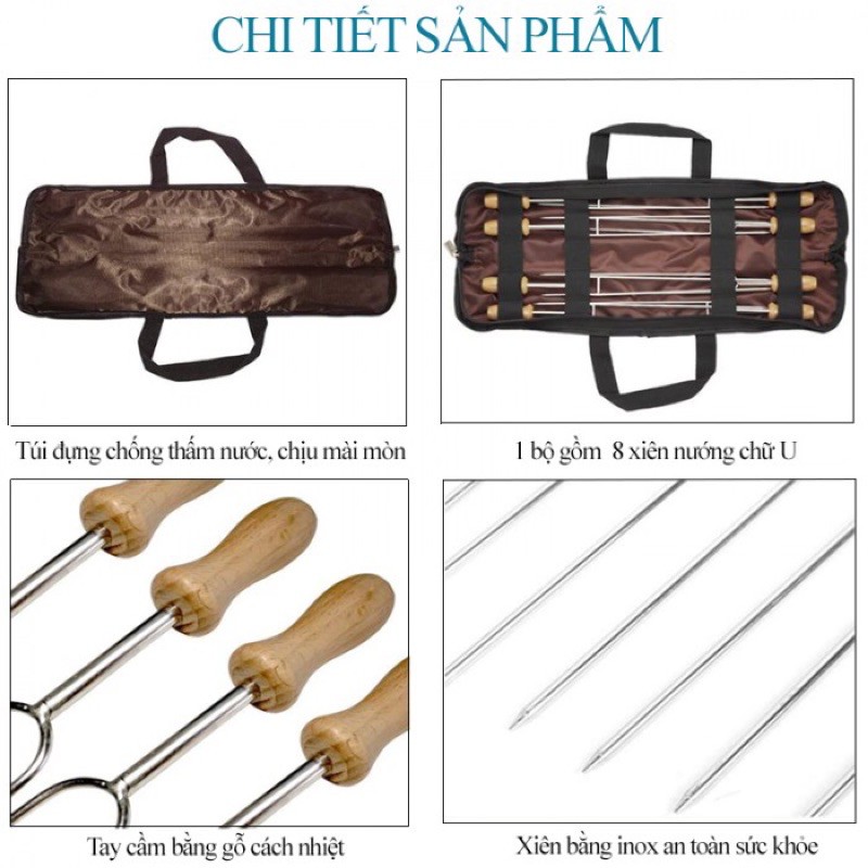 ✨Đồ cắm trại bộ 8 xiên nướng BBQ campingmoon campoutvn dùng với bếp than hoa inox du lịch dã ngoại sang trọng glamping A186