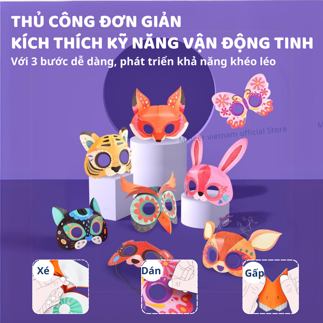Mặt Nạ Giấy - Review Bộ Đồ Chơi Stem Mặt Nạ Giấy 3D Hình Động Vật 3D Animal Paper Masks Mideer