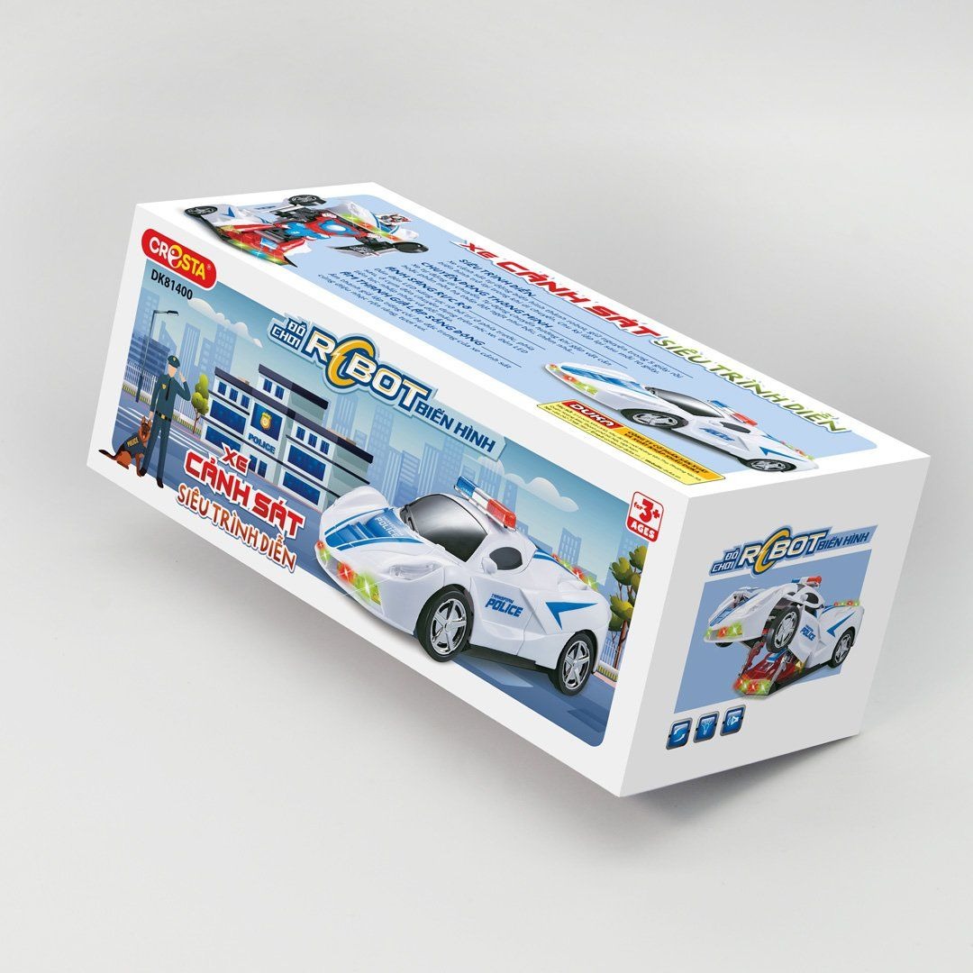Mua tại TiktokRobot biến hình xe cảnh sát - Siêu trình diễn Đồ chơi Robot biến hình xe cảnh sát được sản xuất bằng chất liệu nhựa ABS và hợp kim độ bên cao. Với thiết kế theo mô hình chiếc xe cảnh sát và biến hình thành robot. Robot biến hình xe cảnh sát khi lắp pin và bật nút ON lên có thể tự trình diễn - tự động chuyển hướng khi gặp vật cản có thể biến hình thành chú robot dũng mãnh. Khi di chuyển xe phát ra âm thanh giả lập sinh động cùng ánh sáng phát ra với đèn led rực rỡ. Món đồ chơi sẽ đem lại những giờ phút vui chơi vô cùng hứng thú và những trải nghiệm thú vị, giúp trẻ phát triển khả năng quan sát, phản ứng linh hoạt nhạy bén, phát triển toàn diện các giác quan. Thông tin sản phẩm: