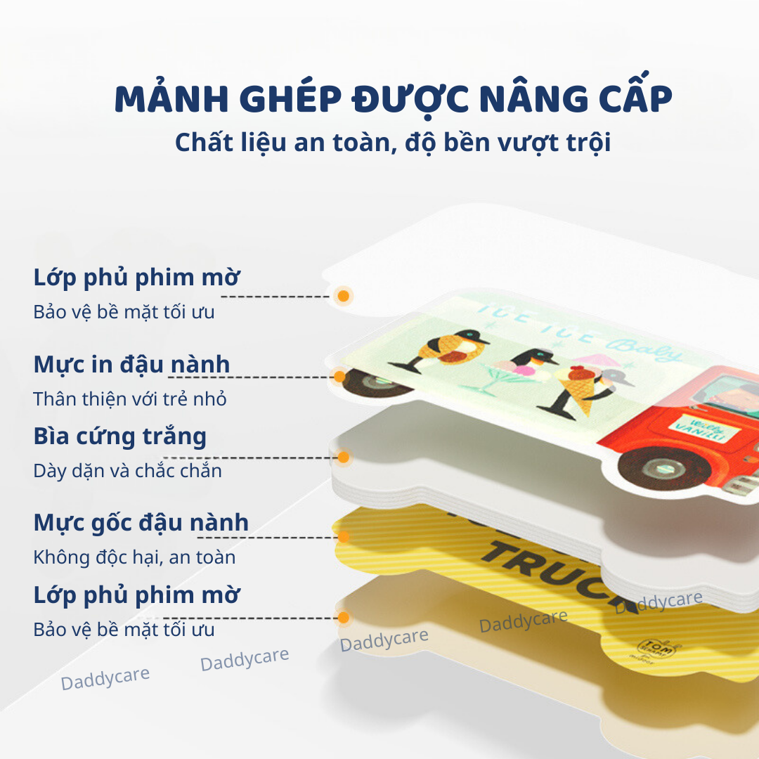 - Nâng Cấp Toàn Diện Với Bìa Cứng Màu Trắng Cao Cấp – Được thiết kế từ vật liệu an toàn, bền bỉ, chống nhai, nứt và bong tróc, mang đến độ bền vượt trội cho trải nghiệm chơi của bé. Cấu trúc 5 lớp cao cấp bảo vệ bề mặt và đảm bảo an toàn cho bé