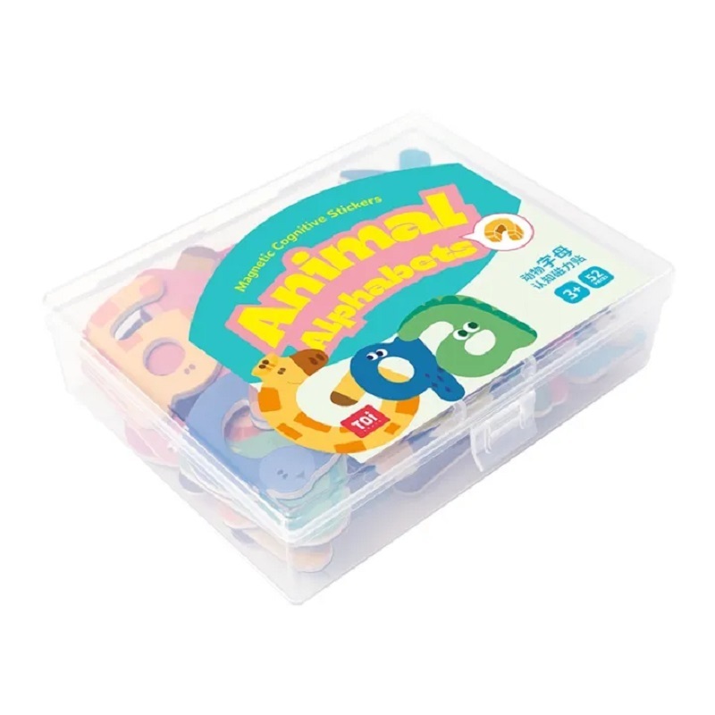 - TOi Animal Alphabets – Bộ chữ cái nam châm TOi gồm 52 miếng gồm 26 chữ cái tiếng Anh viết Hoa, 26 chữ cái tiếng Anh viết thường và 1 bảng hướng dẫn cho bé từ ba tuổi trở lên học chữ cái qua việc nhận biết con vật và ghép từ đơn giản.