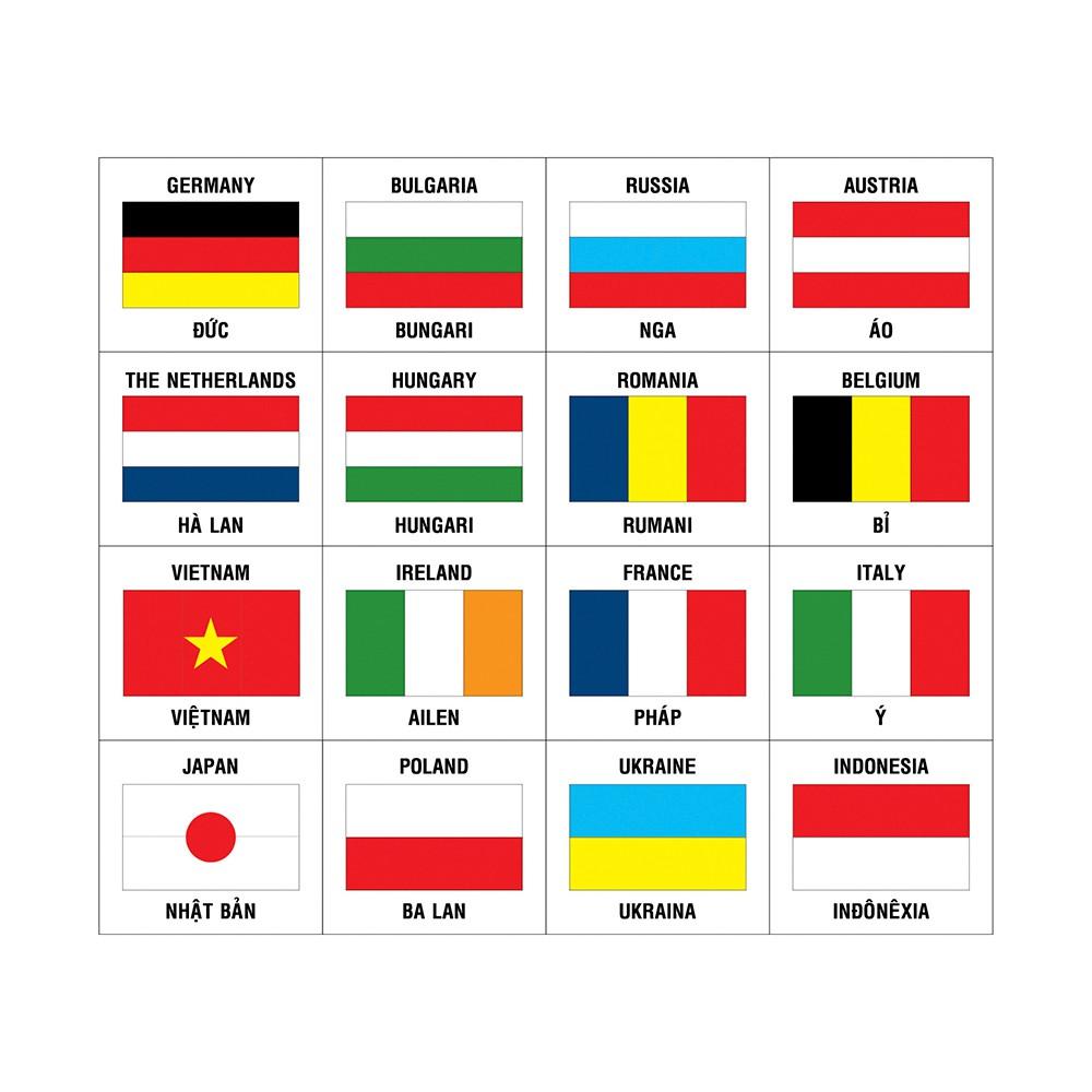 Đồ chơi gỗ Bộ cờ quốc gia | Winwintoys 68152 | Phát triển trí tuệ và màu sắc | Đạt tiêu chuẩn CE và TCVN Kích thước: 25.3 x 16.4 x 3.8 cm Con của bạn đang lớn lên từng ngày, nhu cầu tiếp thu, học hỏi, thích khám phá thế giới bên ngoài ngày càng cao. Qua bộ đồ chơi Bộ cờ quốc gia Winwintoys bé sẽ biết được các loại cờ khác nhau của một số quốc gia trên thế giới. Trò chơi phối hợp giữa tay và mắt khi bé lựa chọn màu sắc và sắp xếp chúng theo khả năng nhận biết của mình. Phát triển kỹ năng khéo léo và trí tưởng tượng ban đầu của bé qua việc xếp những lá cờ hay những hình dạng khác như lâu đài, ngôi nhà v.v… Thông qua trò chơi này, bạn sẽ dạy cho bé hiểu rằng mỗi quốc gia có một văn hóa, màu cờ sắc áo, yếu tố lịch sử, địa lý đặc trưng riêng biệt. Hãy chơi cùng bé để khám phá trò chơi mang tính trí tuệ và đầy sáng tạo này. Sản phẩm có bề mặt nhẵn bóng, không có cạnh bén nhọn, không gây trầy xướt tay bé. Tất cả nguyên vật liệu, nước sơn đều đã qua kiểm định an toàn cho trẻ khi chơi. Sau khi chơi, nên cất giữ sản phẩm ở nơi khô ráo, thông thoáng Kích thước: theo qui định từng sản phẩm Xuất xứ: Việt Nam Sản xuất tại Công ty CPCB Gỗ Đức Thành