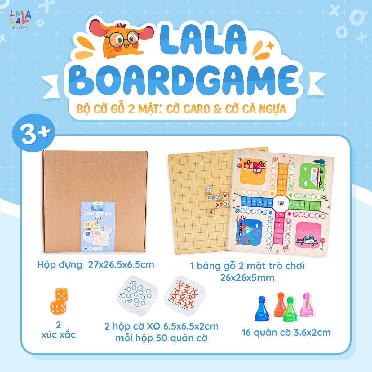 Đồ Chơi Gỗ Boardgame 2in1 Cờ Caro kèm Cờ Cá Ngựa – Lalala Baby Lala boardgame 2in1 cờ gỗ caro kèm cờ cá ngựa đồ chơi hỗ trợ phát triển tư duy logic cho bé Lalala baby