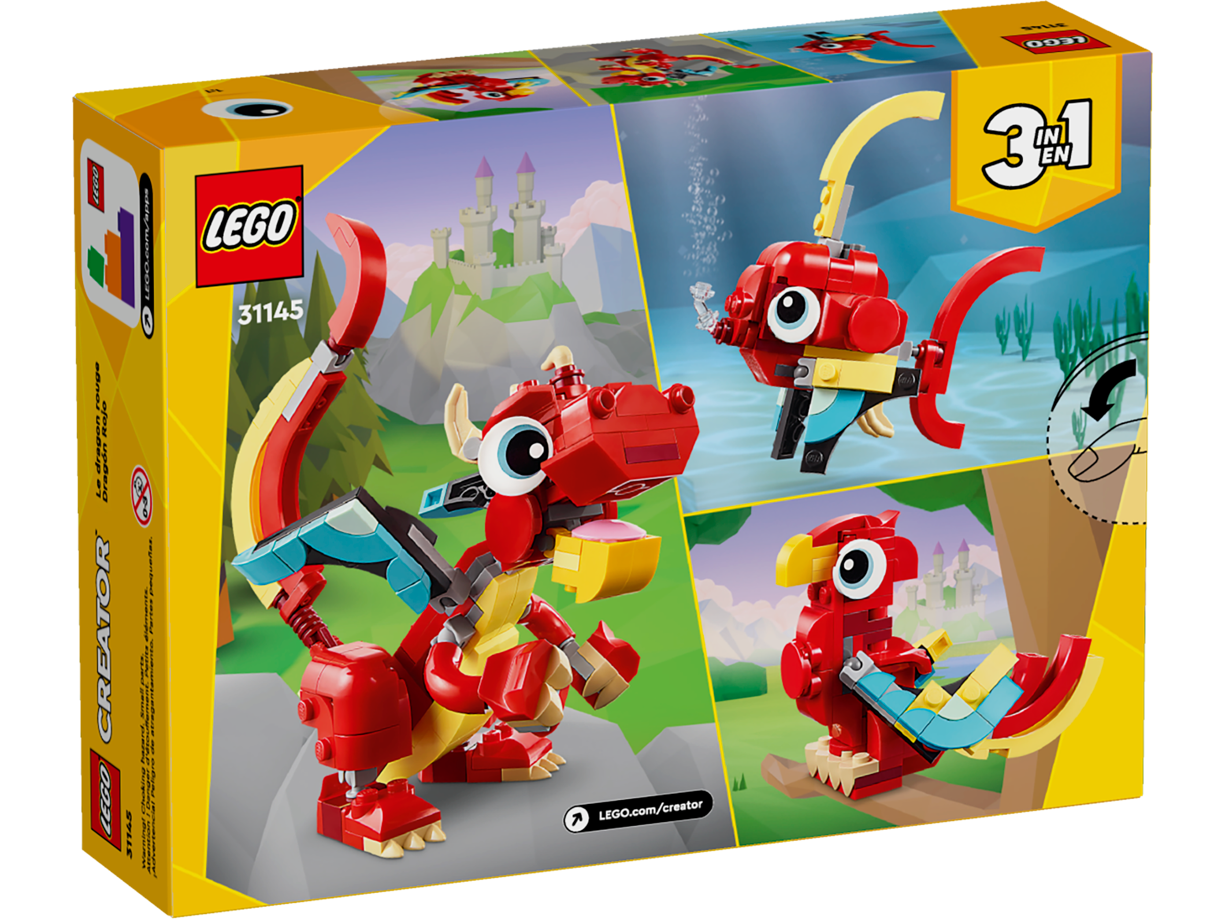 Sẵn sàng cho chuyến phiêu lưu đến với vùng đất diệu kỳ và bí ẩn, nơi bạn có thể tận hưởng chuyến đi cùng 3 loài động vật đầy màu sắc. Lắp ráp chú rồng đỏ may mắn LEGO Creator với đôi cánh và sừng. Để thú vị hơn nữa, bạn có thể xây dựng lại mô hình thành một con phượng hoàng đáng yêu với bộ lông rực rỡ hoặc một chú cá dễ thương đang bơi dưới biển.
