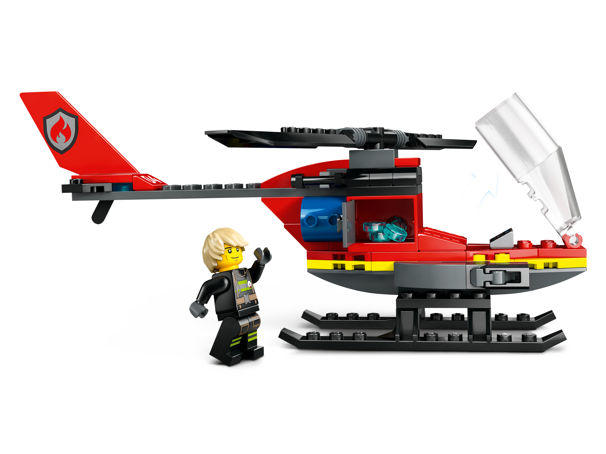 • Có gì trong bộ trò chơi này nào? – Bao gồm mọi thứ bé cần để chế tạo một chiếc trực thăng cứu hỏa đồ chơi và mô hình minifigure phi công lính cứu hỏa