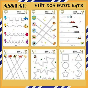 ✨Đồ Chơi Trẻ Em, Học Liệu Montessori, Sách Viết Xoá Được 64 Trang Tặng Kèm 6 Bút, Asstar Đồ Chơi Giáo Dục Cho Bé