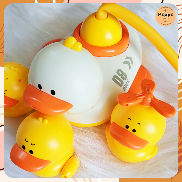 Đồ Chơi Vịt Con Thả Bồn Tắm Cho Bé Bộ nâng cấp gồm 1 vịt mẹ + 1 vòi phun + 3 vịt con + 1 tua vít Mô tả sản phẩm: Vòi sen tự