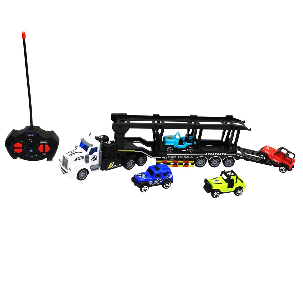 - Xe tải chở 4 xe mô hình: Xe tải điều khiển từ xa, 4 xe mô hình màu ngẫu nhiên
