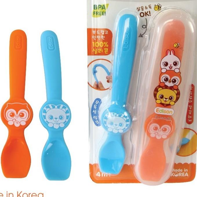 ✨Đồ dùng ăn dặm cho bé MADE IN KOREA Set 2 thìa silicone cho bé ăn dặm Edison set hình Cú, Sư tử và Set hình Thỏ, Cú 6896