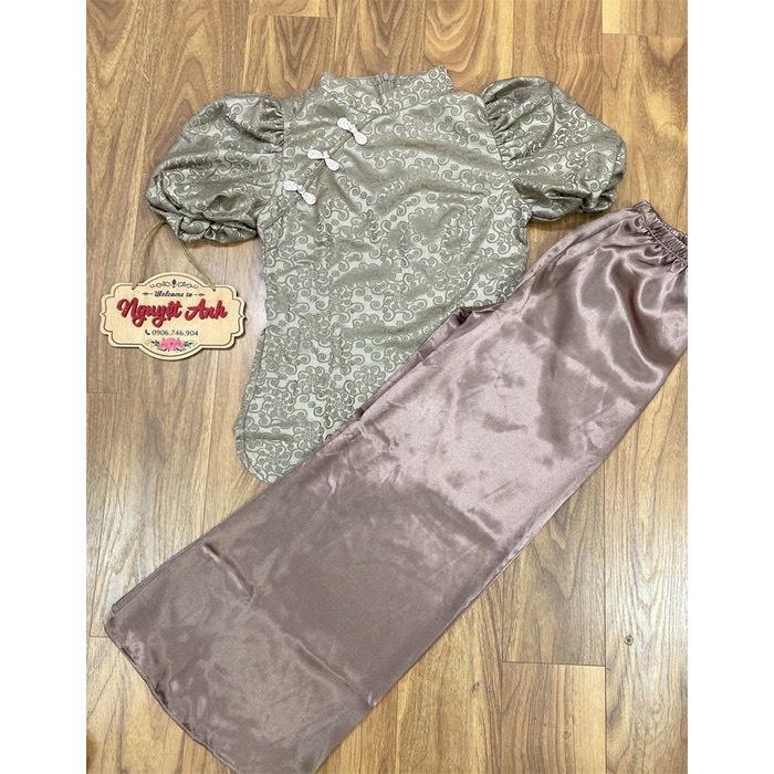 Chất Vải Lụa Pháp Phối Gấm Cao Cấp Hoặc Vải Lụa Phối Gấm Tuỳ Màu Và Size Nên Chất Vải Khác Nhau Quần Ống Rộng Cổ Áo Chui Không Cài Nút BÁN LẺ GIÁ SỈ