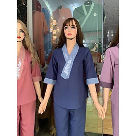 Mẫu pháp phục nữ - quần áo Phật tử đi chùa, đồ lam chất kate lụa mềm có co giãn Sen Hồng 0898553583