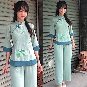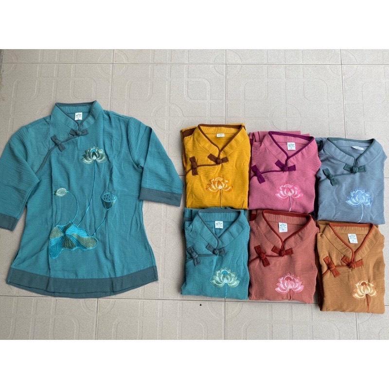 Mẫu pháp phục nữ - quần áo Phật tử đi chùa, đồ lam chất kate lụa mềm có co giãn Sen Hồng 0898553583