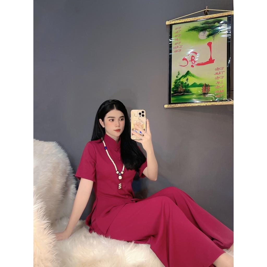 Mẫu pháp phục nữ - quần áo Phật tử đi chùa, đồ lam chất kate lụa mềm có co giãn Sen Hồng 0898553583