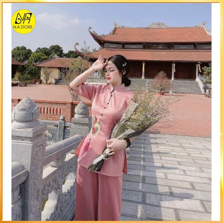 Đồ lam đi chùa cổ tàu thêu sen 185k - quần áo Phật tử nữ đẹp HN HCM - Pháp phục Sen Hồng 0898553583