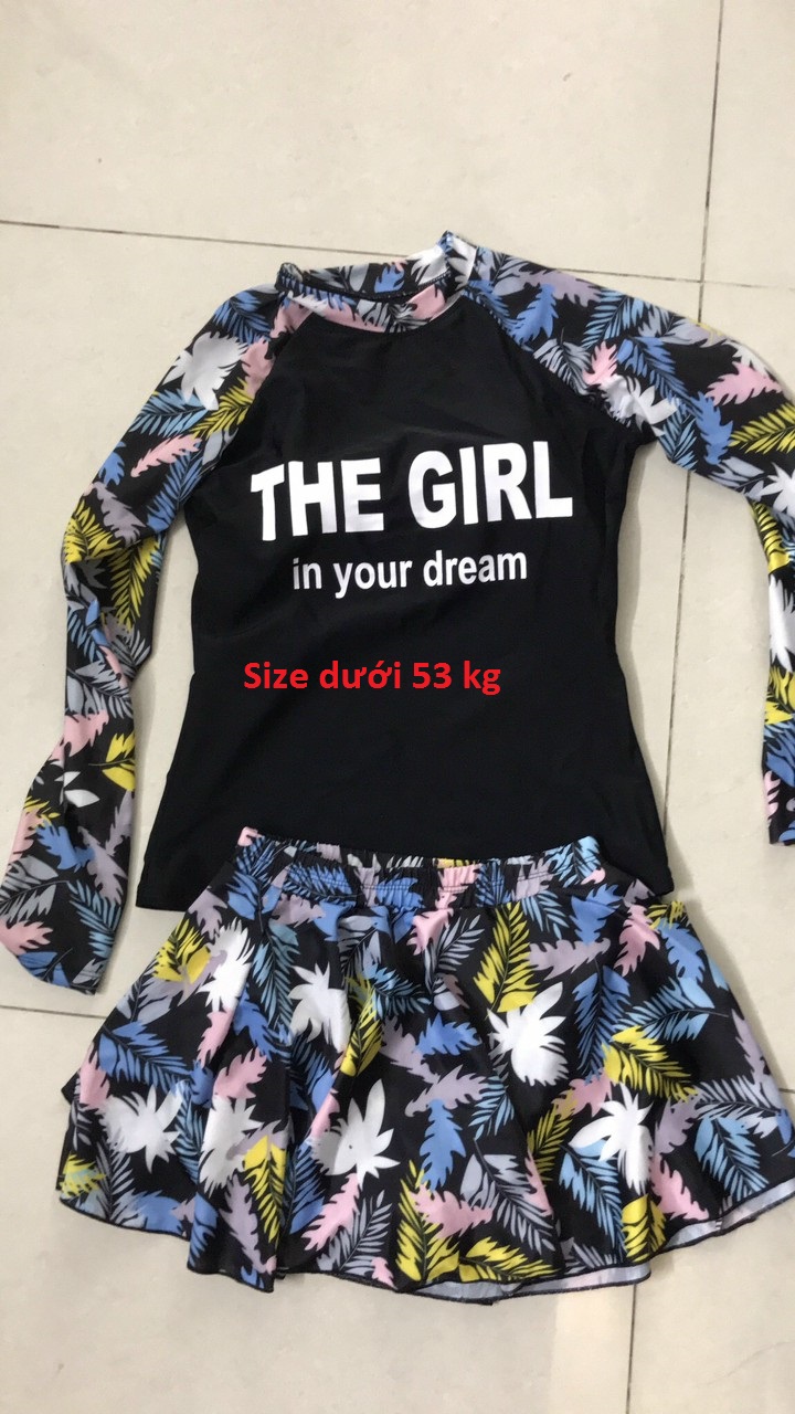 Set Đồ Bơi Nữ Dài Tay Quần 2 Lớp Chất liệu thun Poly Sản Xuất tại Việt Nam Size: 55-65 kg Màu sắc: Màu đen chủ đạo Set đồ bơi, đồ tắm nữ dài tay
