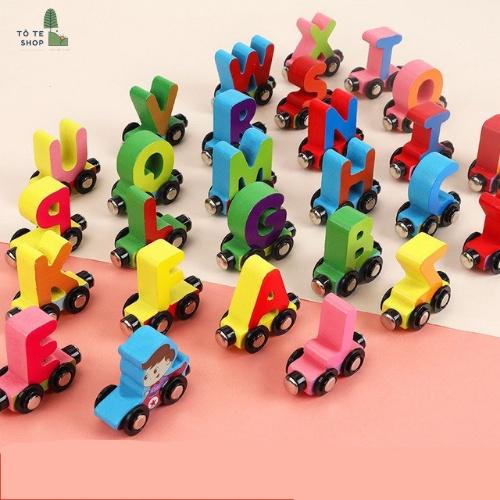 Đồ Chơi Giáo Dục Sớm Đoàn Tàu Nam Châm Chở Chữ Bằng Gỗ Cho Bé