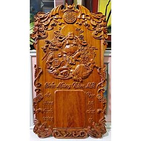 Khung lịch gỗ treo tường | Đốc lịch gỗ chạm Di Lặc gánh tiền vàng