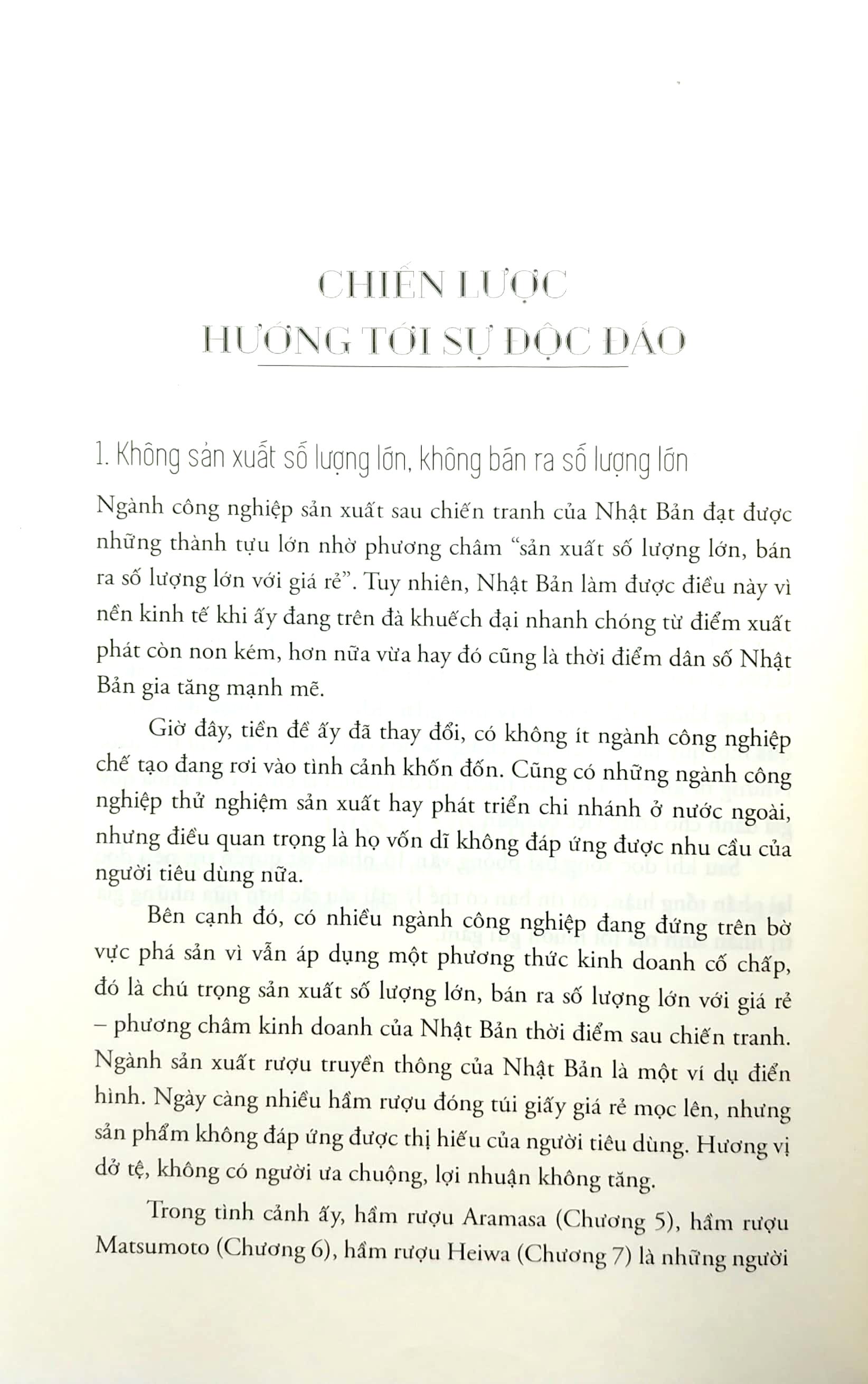 Độc Tôn Để Trường Tồn 51 bí quyết tạo dựng vị thế độc tôn trong lĩnh vực kinh doanh ẩm thực Cuộc đời của con người chỉ kéo dài khoảng 100 năm, và thời đại mà bất cứ ai cũng phải làm việc đến 70-80 tuổi đang nhăm nhe tấn công chúng ta. Nếu muốn tận hưởng một cuộc đời trọn vẹn, muốn trải qua mỗi ngày trong vui vẻ, vậy thì sở hữu một công việc độc đáo mà chỉ m.ình bạn mới làm được sẽ là chìa khóa quan trọng hơn tất thảy, dù với mục đích kiếm tiền hay bất cứ mục đích nào đi nữa. Thông qua cuốn sách này, tác giả sẽ giới thiệu cho chúng ta những công việc thấm đẫm triết lý của sự độc đáo của 15 nhân vật hoạt động năng nổ trong ngành ẩm thực, rượu sake và nông nghiệp Nhật Bản.