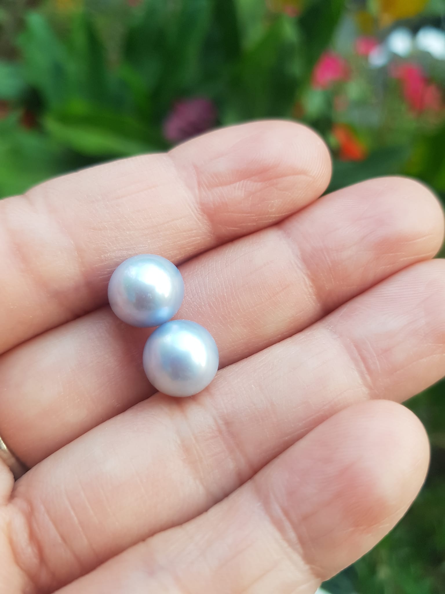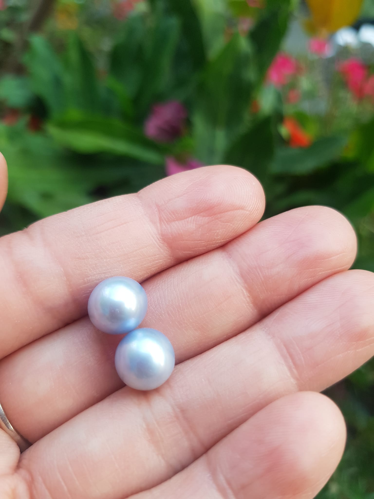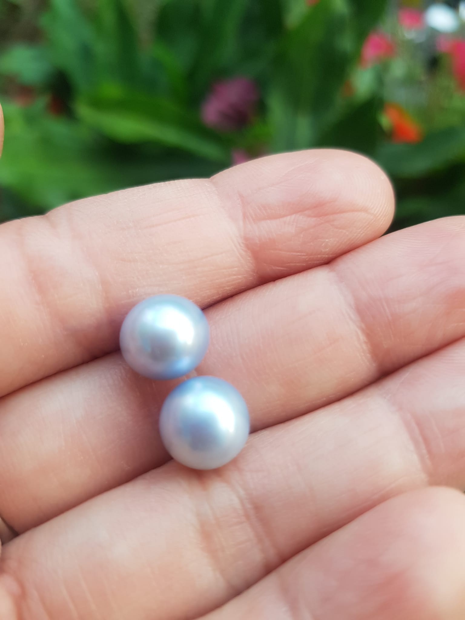Đôi Bông Tai Ngọc Trai xanh dương nhẹ bóng đẹp 9mm Size hạt 9mm ngọc trai cao cấp Shop Sunny Quận 8