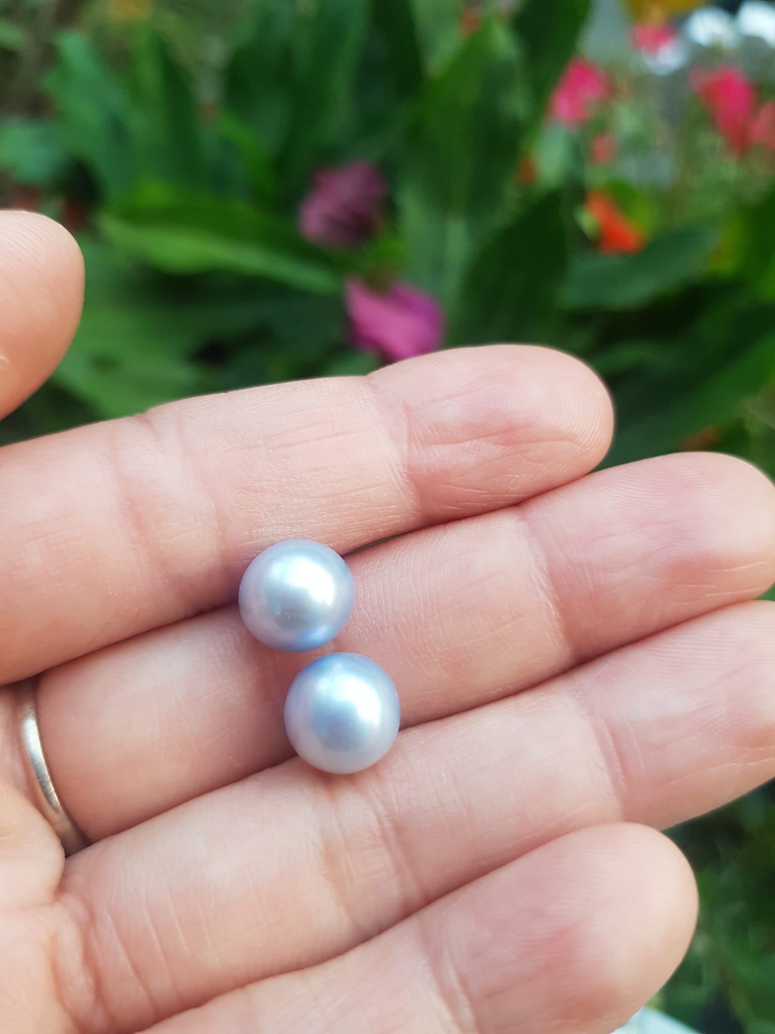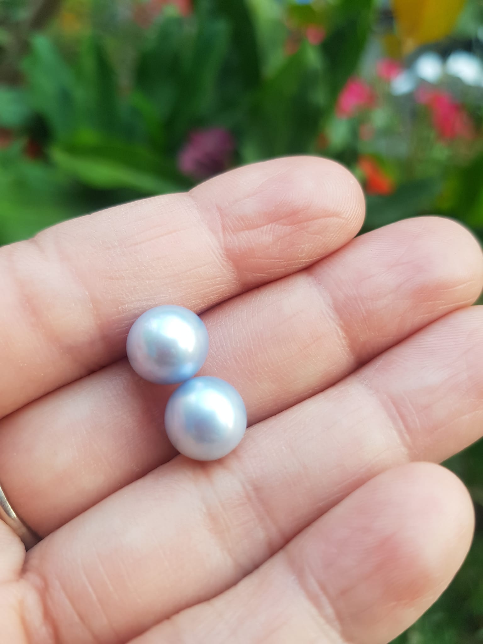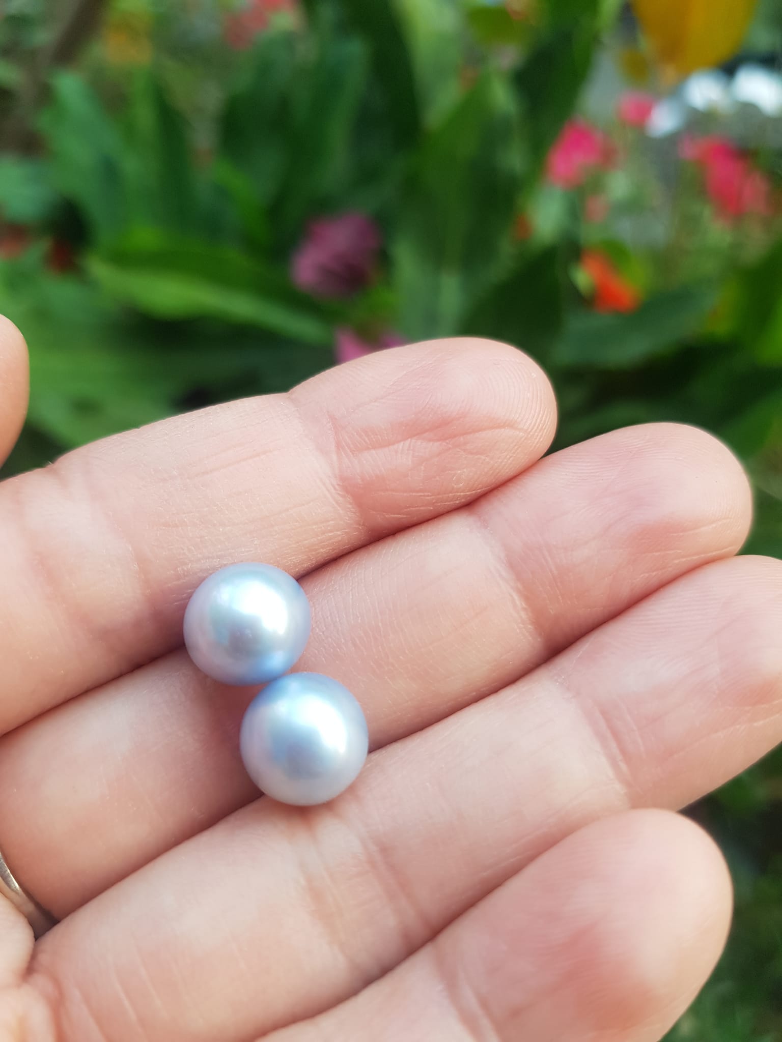 Đôi Bông Tai Ngọc Trai xanh dương nhẹ bóng đẹp 9mm Size hạt 9mm ngọc trai cao cấp Shop Sunny Quận 8