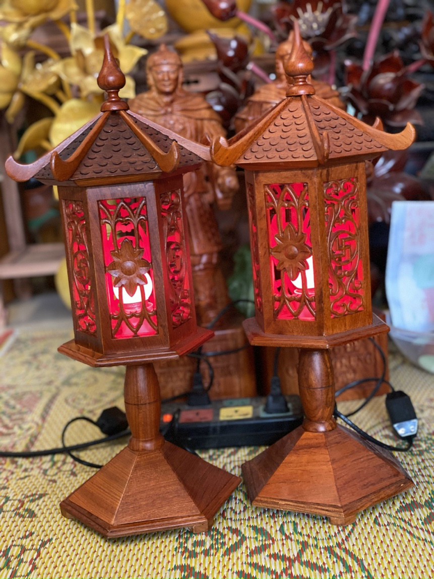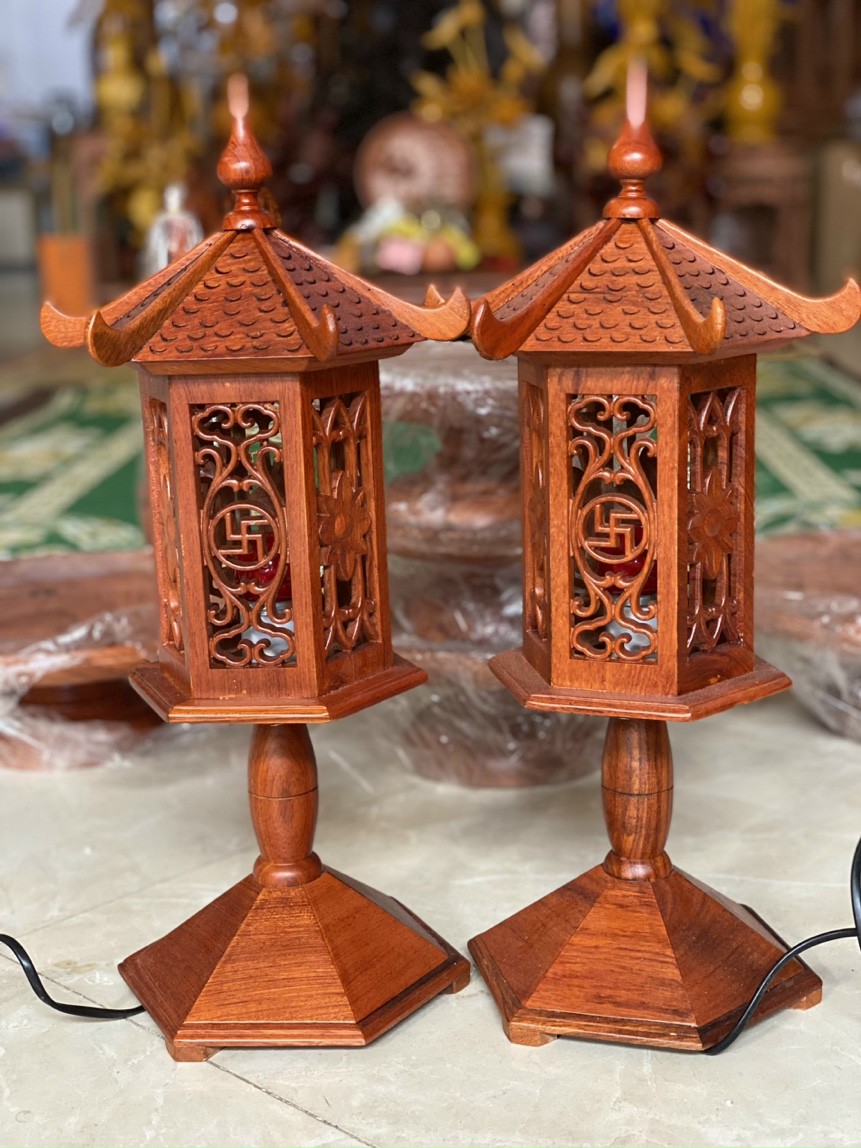 Đôi đèn gỗ hương cao cấp | Cặp đèn thờ bằng gỗ cao 40cm siêu đẹp