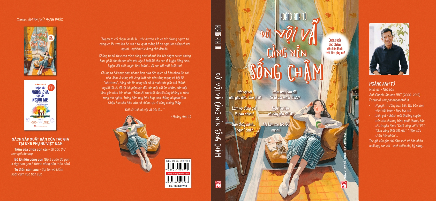 Đời vội vã càng nên sống chậm là cuốn sách mới nhất của Hoàng Anh Tú dành cho phụ nữ. Mỗi bài viết đều tiếp cận một vấn đề cụ thể, từng bước từng bước lắng nghe sự trải lòng của phụ nữ, từng bước gỡ rối những vướng mắc trong chính suy nghĩ của phụ nữ, từ đó chữa lành trái tim nhiều tổn thương của phụ nữ - đôi khi, những tổn thương đó là do chính họ tự làm mình đau, tự mình vướng mắc. Buông bỏ, yêu bản thân, sống tích cực bởi suy nghĩ tích cực…, đó có lẽ là liều thuốc cho trái tim phụ nữ, để họ biết yêu đời, làm vợ hạnh phúc và làm mẹ hạnh phúc.