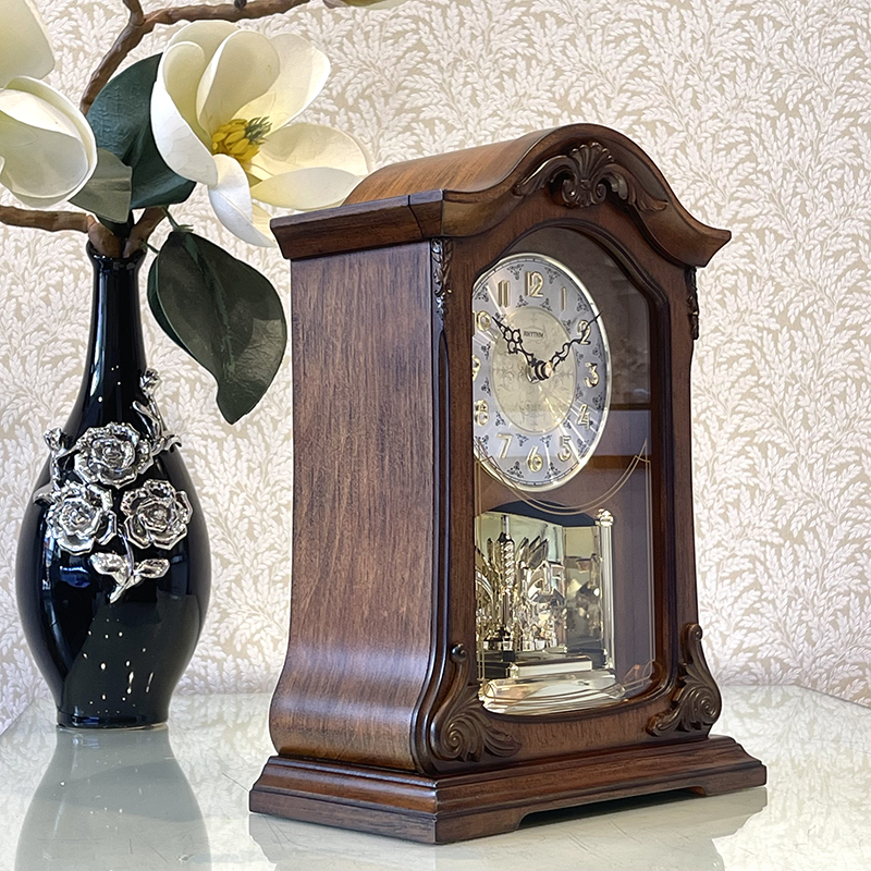 ✨Đồng hồ Để bàn Rhythm CRH209UR06 – Kt 21.0 x 37.0 x 12.5cm, Vỏ gỗ. Dùng Pin.