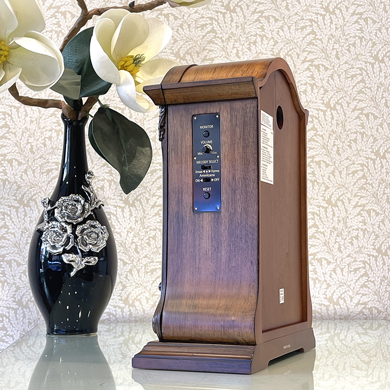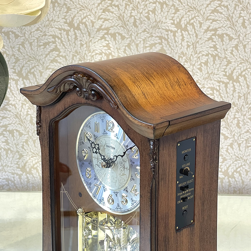 Mua tại TiktokĐồng hồ để bàn Rhythm CRH209UR06 – Kt 21.0 x 37.0 x 12.5cm, 1.9kg, dùng pin ( C x 2, AA x 1), vỏ gỗ. Quả lắc cẩn pha lê sang trọng. Âm thanh nổi thính phòng SIP ( Sound In Place ) ngân vang với 4 chọn lựa chế độ phát nhạc gồm : 12 bản nhạc cổ điển / 6 bản giáng sinh. Mắt cảm ứng ánh sáng không phát nhạc khi thiếu sáng. Núm chỉnh âm lượng tiện lợi.