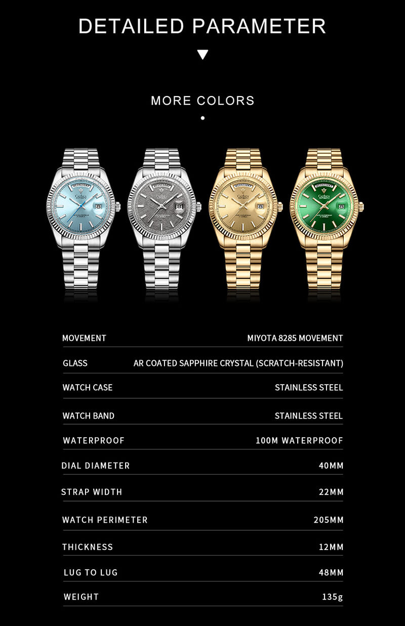 Thương Hiệu CADISEN Quốc gia đăng ký thương hiệu Nhật Bản Kiểu máy Nhật Bản (Japan Movt) Mã sản phẩm C8185M3 Giới tính Nam Loại sản phẩm Đồng hồ cơ (Automatic) Đường kính mặt 40
