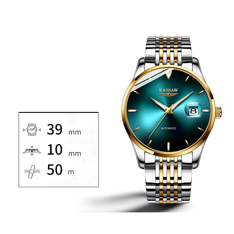 Đồng hồ nam chính hãng Kassaw Thụy Sỹ Thiết kế sang trọng, đẳng cấp cho quý ông Thời gian trữ cót lâu lên đến 40h Chống nước 5ATM, Kính sapphire Toàn bộ máy được làm