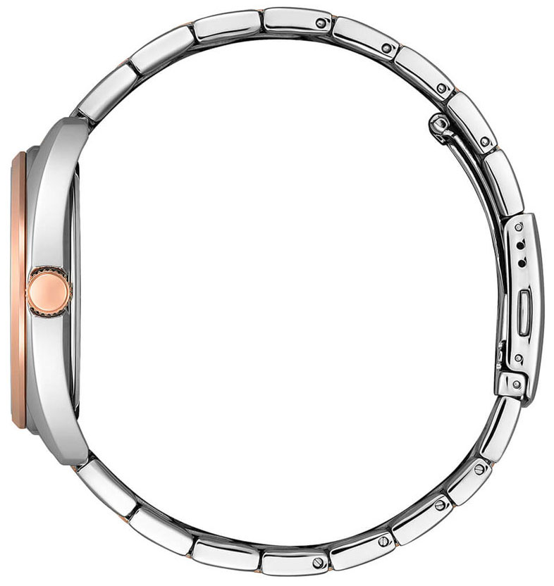 Đặc điểm kỹ thuật - - Vật liệu vỏ / gờ: Mạ ion - Chốt gập 3 chỉ với một lần bấm - Dây đeo bằng thép không gỉ - Mặt kính khoáng - Khả