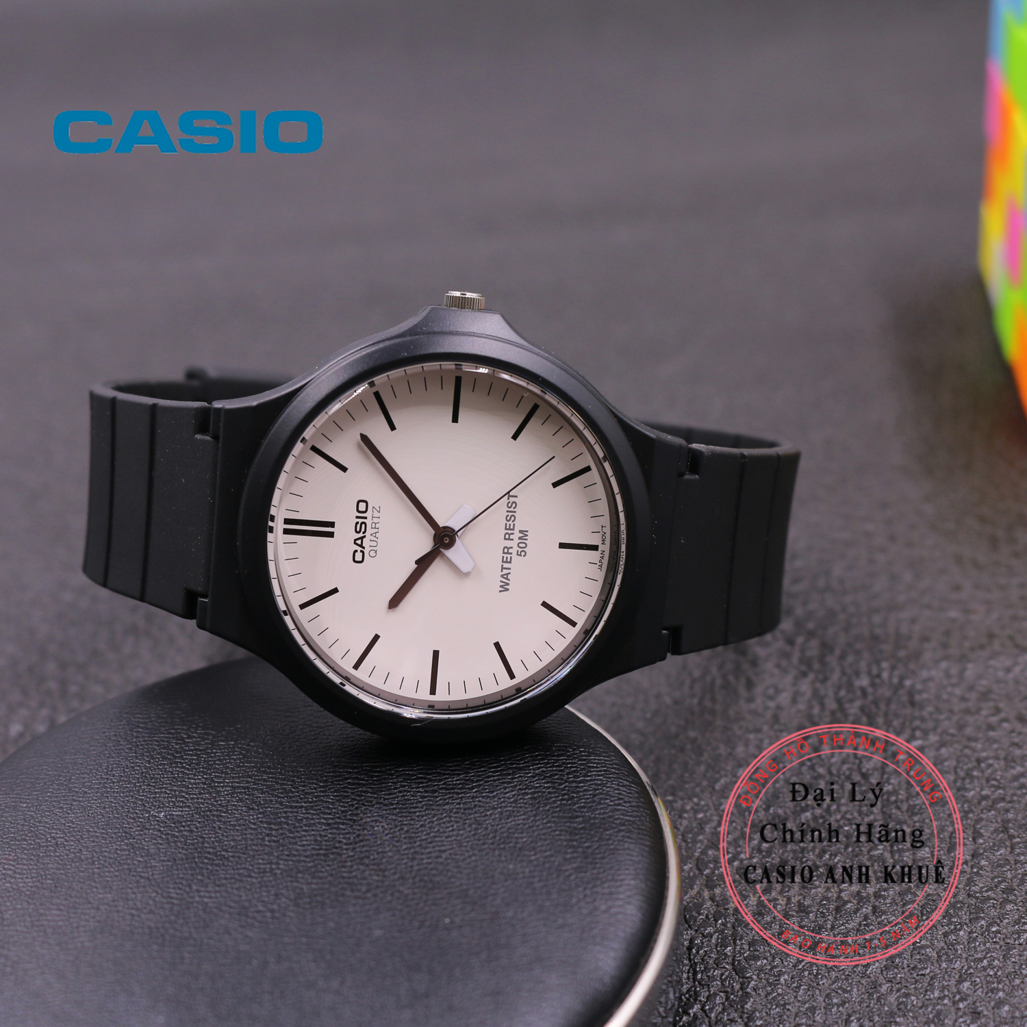 Đồng Hồ Nam Casio MW-240-1BVDF dây nhựa màu đen kết hợp với mặt số màu trắng chống nước 50m.