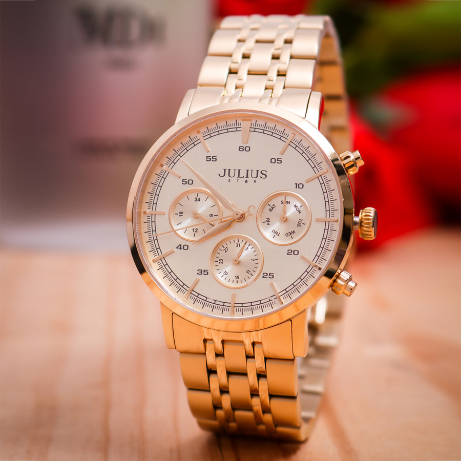 - Đồng hồ Julius thiết kế thời trang, màu sắc đa dạng, kiểu dáng phong phú không kém phần sang trọng.