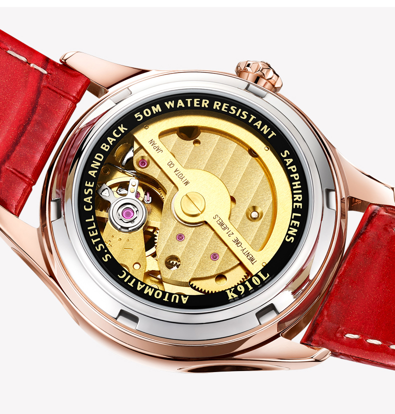 THÔNG SỐ SẢN PHẨM: Thương hiệu :Kassaw Mã sản phẩm : K990-2 Giới tính : Nữ Kiểu máy : Đồng hồ cơ (Automatic) Đường kính mặt : 33 mm Độ dày : 10 mm Chất liệu